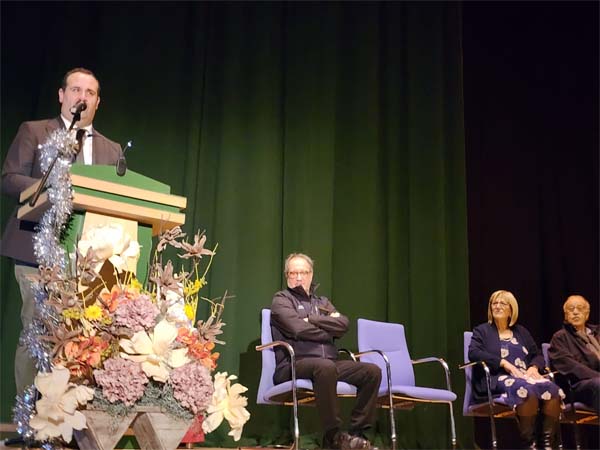 05.12.2025.- El diputado de Cultura, David Mingo, ha presentado el acto de inauguración del belén sostenible elaborado por la Asociación de Mujeres Damajuanas, acompañado por Pilar Duque. La obra es el resultado de un año y medio de trabajo colectivo que ha fortalecido la convivencia y el apoyo mutuo entre mujeres del entorno rural, especialmente entre quienes viven solas. Lo que empezó como un pequeño reto impulsado por Iberdrola se ha transformado en una red de más de ochenta participantes.